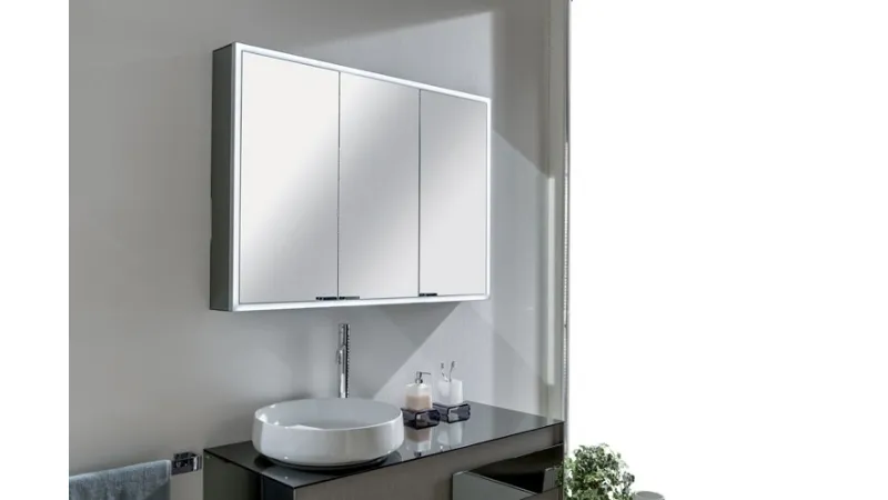 In ogni bagno la presenza di uno specchio, che viene solitamente posizionato sopra il lavabo, è fondamentale. Se l'ambiente bagno non dispone di generose metrature potete pensare di ricorrere a uno specchio provvisto di contenitore, dove riporre cosmetici e oggetti. Quando lo acquistiamo poniamo attenzione nella scelta di uno specchio le cui dimensioni risultino proporzionate al mobile sottolavabo. La forma dipenderà invece dallo stile dell'arredo circostanze e dal nostro gusto personale. Le aziende produttrici offrono una ricca gamma di specchi per il bagno, anche provvisti di illuminazione a led. In foto una proposta di specchio contenitore per il bagno firmato Inda e dotato di superficie riflettente interno/esterno, luce dimmerabile, casse e Bluetooth, per una massima fruibilità non solo estetica ma anche tecnologica.