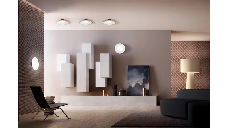 Le plafoniere moderne, vale a dire le lampade applicate al soffitto o alla parete, si adattano alla perfezione a soggiorni dall’arredamento minimal e contemporaneo ai quali regalano un tocco di design.