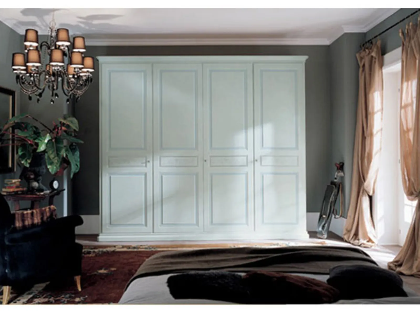 Gli armadi classici oggi e gli armadi di un tempo si differenziano per molti elementi: un tempo la decorazione era molto più rilevante rispetto a oggi, che si palesa per lo più con soluzioni di modanature e sottosquadri. Il decorativismo degli armadi classici di un tempo era dato dal decoro a mano in genere floreale o naturalistico, che si snodava sul fronte nella parte alta e in quelle laterali, caratterizzando l’arredo delicatamente. Prima foto: Armadio Ginevra 3. Collezione notte realizzata con cornici, zoccoli e telai delle ante in massello di tulipier e pannelli impiallacciati noce tanganika. Top di comò e comodini sono in aspen massiccio. Finitura disponibile noce anticato, noce spugnato gommalacca, avorio patinato anche con decoro, (in foto) e bianco usurato. Prezzo in Euro, versione in foto compreso nell'intervallo € 2.250 / € 2.500