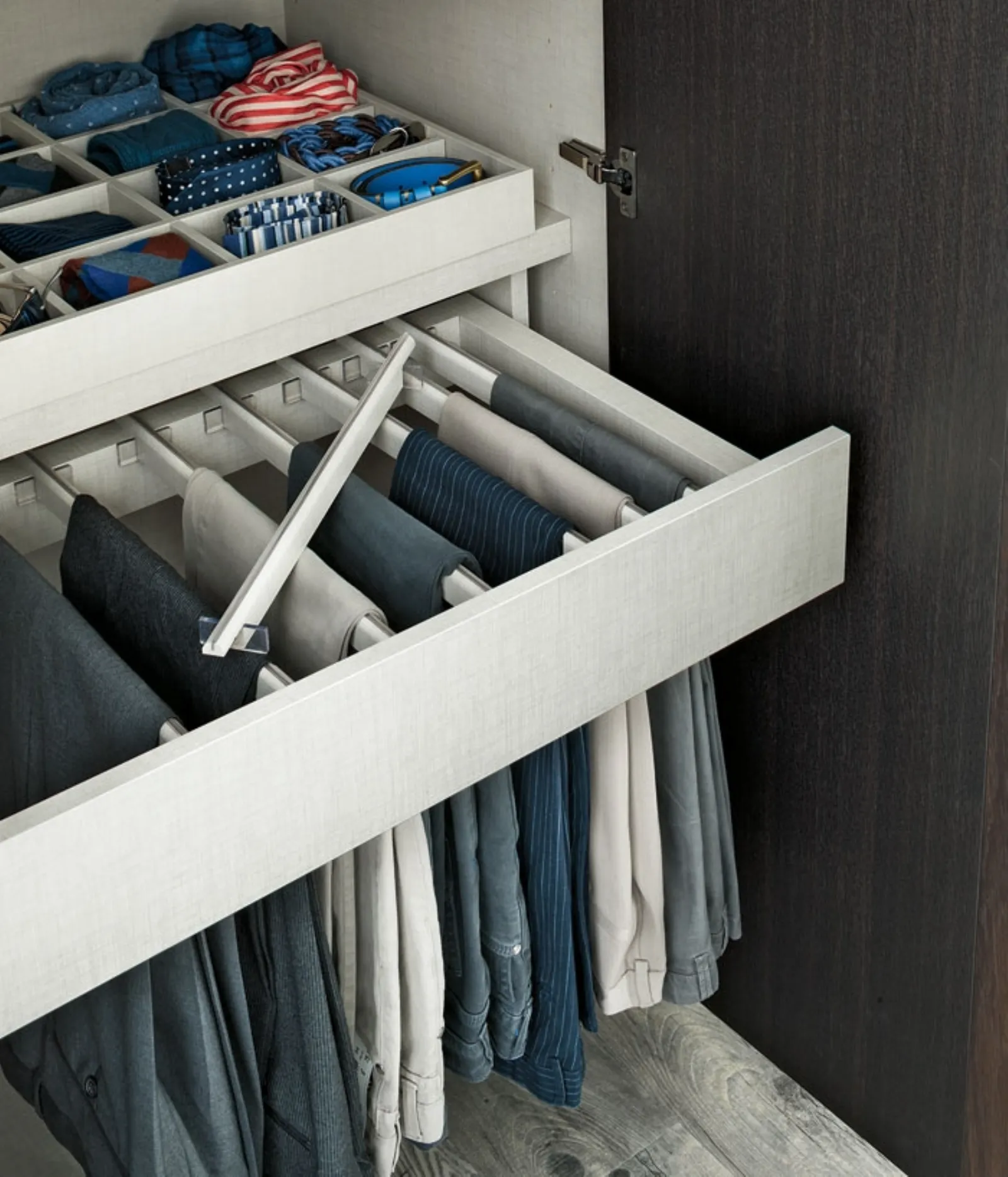 Grazie all’articolato programma Armadio al Centimetro di Lema abbiamo la possibilità di personalizzare il nostro guardaroba anche nei più piccoli dettagli, in modo da sfruttare al meglio lo spazio e di organizzarne gli interni secondo le abitudini e il gusto personali. L’armadio infatti va progettato cosicché indumenti, accessori e oggetti siano sempre ben visibili e a portata di mano.