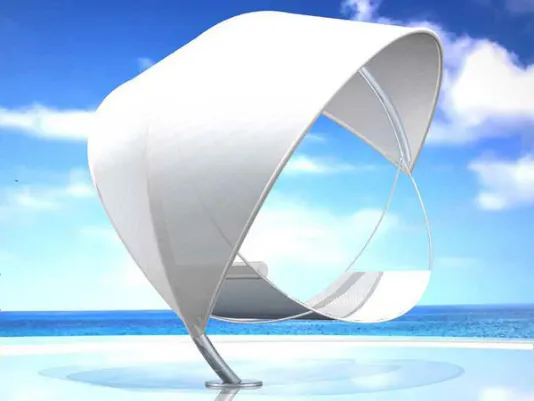 Questa nuova collezione prende il nome dall’amaca WAVE, che ha fatto la sua prima apparizione all’ “HotelShow” in Dubai nel giugno del 2008, scelta tra 20.000 prodotti per rappresentare la copertina del catalogo dell’importante fiera, unica a ricevere una tale attenzione. Gli organizzatori di Maison & Objet, la più importante fiera europea di design indoor/outdoor a Parigi, offrirono a WAVE uno spazio appositamente dedicato, considerando l’amaca un oggetto speciale, unico al mondo. Non a caso ha ricevuto ben cinque design nominations a Maison & Objet, nel settembre 2008. WAVE non è un’amaca, non è un dondolo, non è un lettino da sole, né un parasole: si tratta prima di ogni altra cosa di un’opera d’arte, una creazione che unisce bellezza e funzionalità, tecnologia ed eleganza per il tuo relax in giardino. Provoca un tale senso di benessere alle persone che la guardano e che la provano, da non lasciare alternativa al possederne una. Realizzata in acciaio inossidabile con finitura elettrolitica abbinato a un tessuto perforato assai resistente (di un tipo per la parte superiore di copertura, di un altro per la zona dove ci si adagia), WAVE si appoggia a terra su un unico elemento che conferisce all’oggetto la sensazione di galleggiamento nell’aria pur assicurando una grande resistenza, dovuta a un progetto strutturale pensato per sostenere grandi pesi e sopportare indenne le avversità metereologiche.
