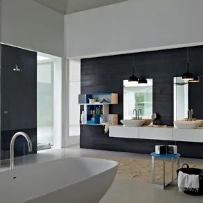 Arredare bagni moderni oggi significa caricare di classe e design lo spazio adibito a sala da bagno, rendendolo stiloso e caratteristico. Sono le linee e la funzionalità che fa tutto. Infatti, arredare bagni moderni è un modo per renderli ambienti tutti da scoprire, ambienti unici al pari di spazi living o cucine di ultimo design. Le forme che caratterizzano i bagni moderni sono essenziali, minimali, pulite e lineari: sono queste a rendere significativo lo spazio, tramite semplici cubi, superfici rette, ripiani lineari e dalle fattezze rigide e senza troppi decori. Makro Play Replay è un sistema di mobili modulari per il contenimento ed è costituita da elementi da terra con lavabi da appoggio o da incasso, da pensili sospesi tutto da comporre liberamente in base allo spazio e alle necessità funzionali. Makro permette un alto livello di personalizzazione tramite un continuo dialogo tra gli elementi architettonici, materiali e dettagli. In foto: bagno Makro Play Replay.