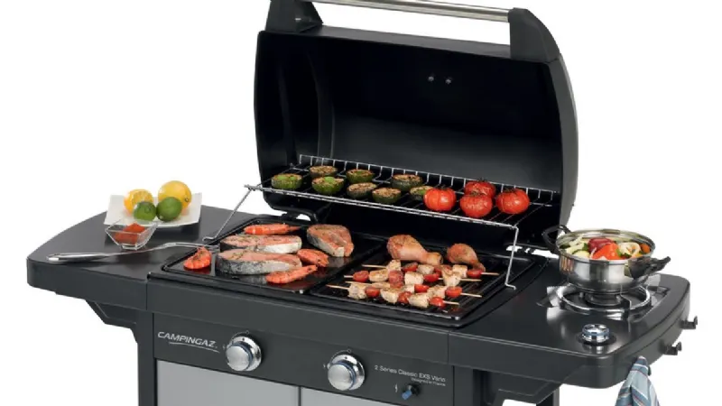 Costa circa 240 euro il barbecue che vedete nella prima foto, cioè il modello 2 Series Classic EXS Vario di Campingaz. Caratteristiche principali: 2 bruciatori in acciaio inox, griglia in ghisa ad elevata conducibilità termica, fornello laterale, coperchio e carrello in acciaio verniciato.