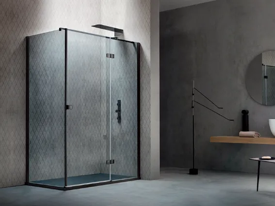 In base al gusto e alle esigenze personali è possibile scegliere l'apertura saloon, interna ed esterna, che consente un accesso semplice e immediato all’interno della doccia nonché l’utilizzo di tutto lo spazio utile; oppure quella semicircolare, che valorizza l’angolo con linee arrotondate e la scorrevolezza dell’apertura. Un vasto assortimento di accessori e complementi, fra cui piatti doccia, colonne e maniglie integra il programma delle chiusure, personalizzando ulteriormente lo spazio. Più precisamente Arcom permette di scegliere fra tre tipologie di piatti e cinque modelli in molteplici finiture materiche o lisce, pensate per essere abbinate al top dell’arredo bagno firmato dallo stesso brand e ai pannelli che rivestono l’interno doccia. I pannelli a fasce orizzontali, realizzati in differenti spessori e misure, rivestono tutta la superficie interna della doccia o soltanto una parte e, a seconda della finitura scelta, danno un preciso carattere all’ambiente. La fascia inferiore della parete angolare rappresenta un’ottima alternativa per completare lo spazio di una precedente vasca o può più semplicemente essere una scelta stilistica. Alla definizione del total look contribuiscono i profili delle collezioni doccia, che possono essere laccati nelle 50 tonalità Arcom per creare l’abbinamento ideale col mobile e con gli accessori bagno.