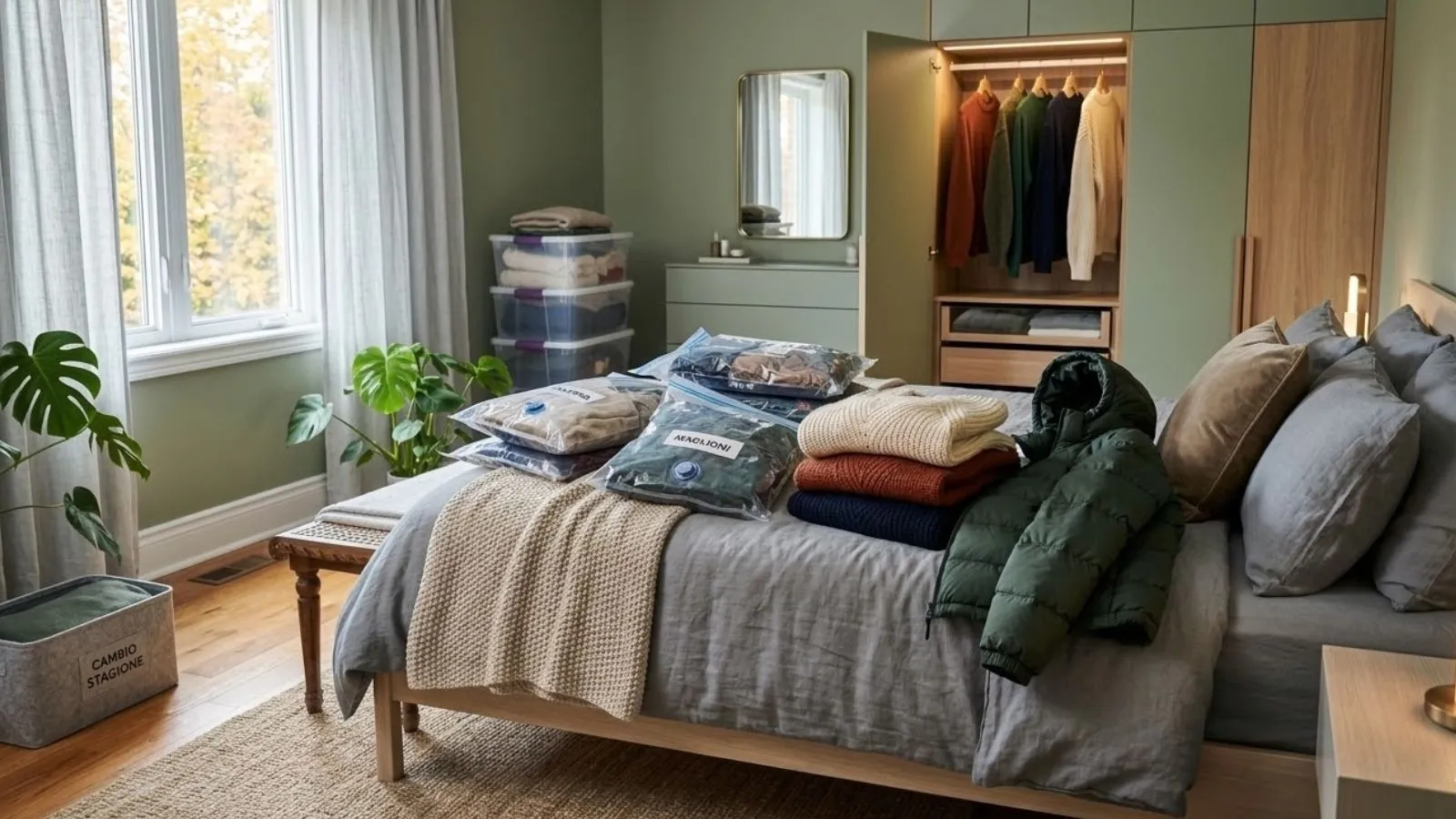 Il cambio stagione primaverile va effettuato idealmente tra fine marzo e inizio aprile, quando le temperature diventano davvero più miti. Scegliere un giorno senza pioggia consente di arieggiare il guardaroba e i vestiti senza rischiare che entri aria umida nella camera da letto.