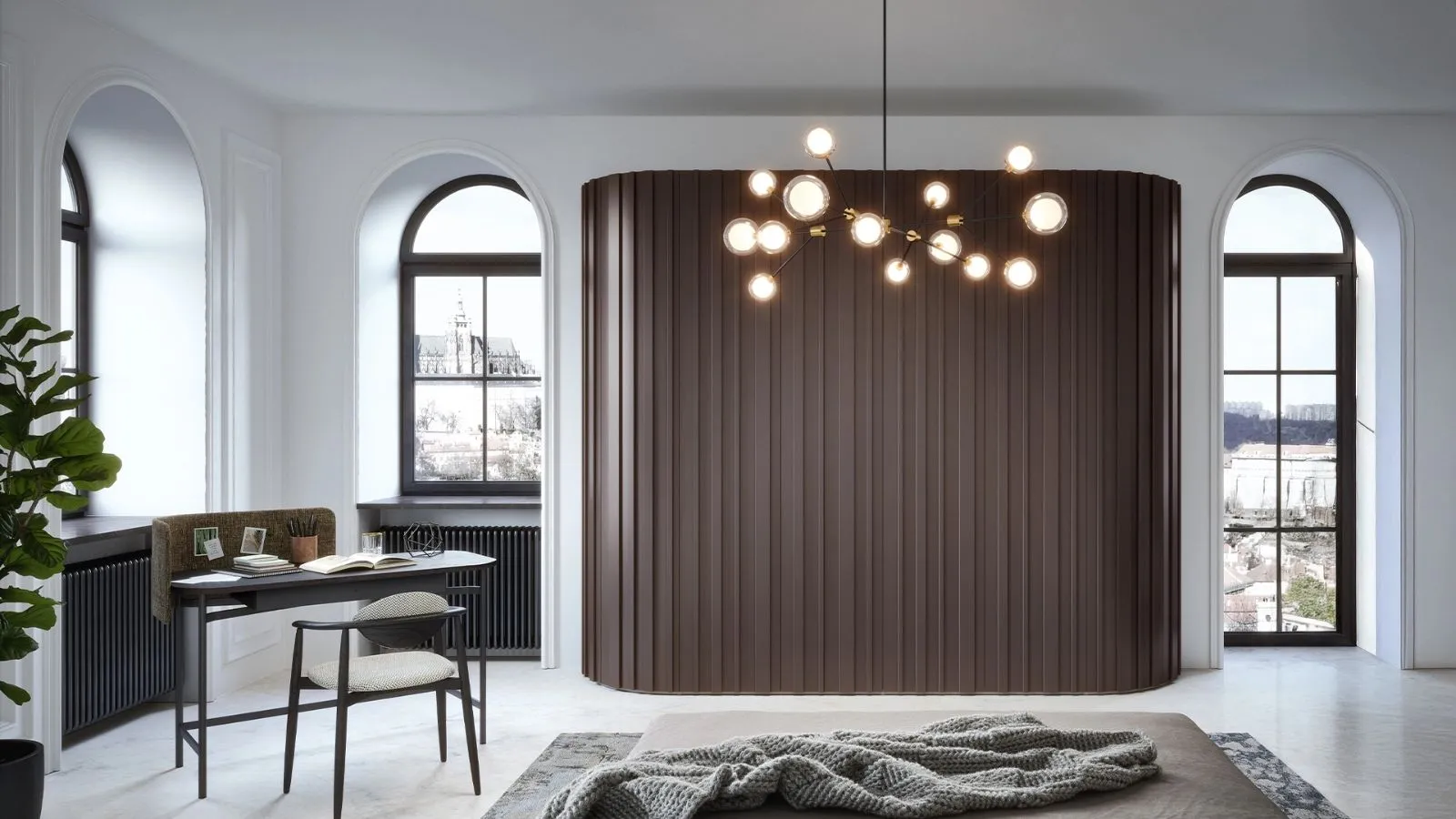 Anche l'illuminazione svolge un ruolo insostituibile nella creazione dell'atmosfera desiderata. Colloca un lampadario a sospensione centrale e delle lampade da comodino che offrono una luce più intima e direzionata.