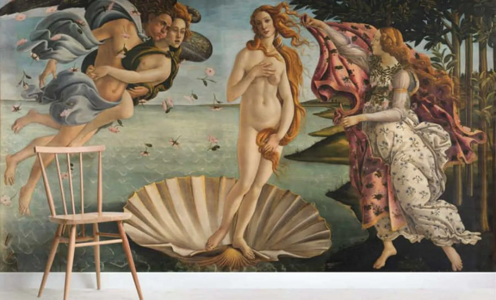 In foto la carta parati murale di MuralsWallpaper raffigurante La nascita di Venere. Prezzo: da 37,20 euro al mq.