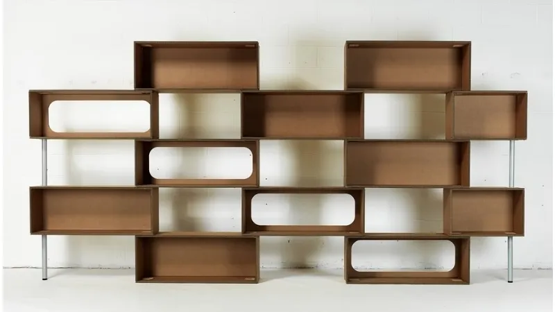 Un arredamento con ridotto impatto ambientale, sintonizzato sulle necessità funzionali ed estetiche della casa moderna, rappresenta il risultato migliore della sintesi tra rigore modernista, inteso come modularità, e riscoperta dell'antico, attraverso il recupero dei materiali riciclabili. Mattoni, la libreria ideata da Giorgio Caporaso per Lessmore riassume queste qualità, sia come mobile d'arredo sia come possibile parete divisoria di un open space: l'elemento base è un “mattone” di legno o cartone, liberamente componibile su una struttura portante di sottili elementi tubolari, rispetto ai quali può essere anche ruotato. Particolare interessante: è previsto un elemento speciale in cui creare il proprio piccolo giardino in miniatura. In foto: Libreria modulare Mattoni, collezione Ecodesign di Lessmore