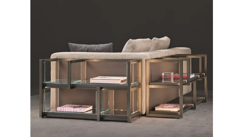 Case moderne interni: come arredarli? Disporre di tutti gli spazi e utilizzarli seguendo un’accurata razionalizzazione comporta una progettazione in cui ogni elemento deve poter essere adeguatamente collocato per valorizzare l’ambiente e per renderlo il più possibile funzionale. La modernità risiede anche nell’adottare soluzioni originali, che consentano di fondere praticità a design. Un esempio è la nuova libreria bassa della collezione Continuum di Natevo, in foto, presentata al Salone del Mobile 2017, pensata per un living di varie dimensioni. Il vantaggio di questa libreria, infatti, è quello di disporre di un’altezza compatibile con la possibilità di essere inserita accanto al divano o come retro-divano. La struttura, essenziale ma elegante, è disponibile in due finiture: bronzata o gris sablé con elementi separatori in vetro di forte spessore e ripiani nelle finiture legno Rovere Caffè o noce Canaletto Rialto, termostrutturate antigraffio Continuum, Style, Epoque e River.