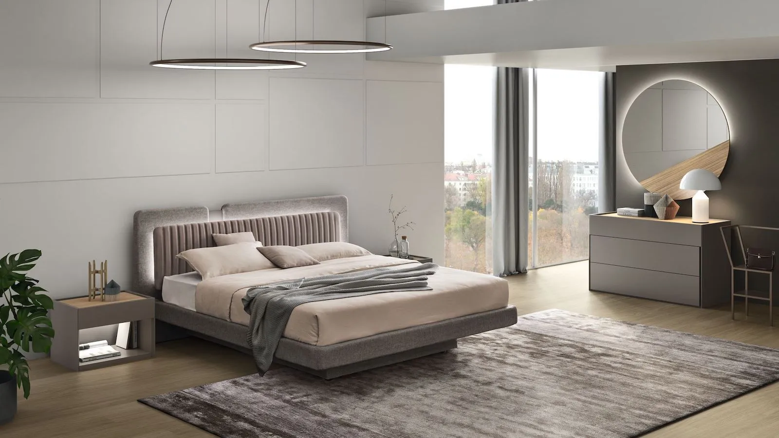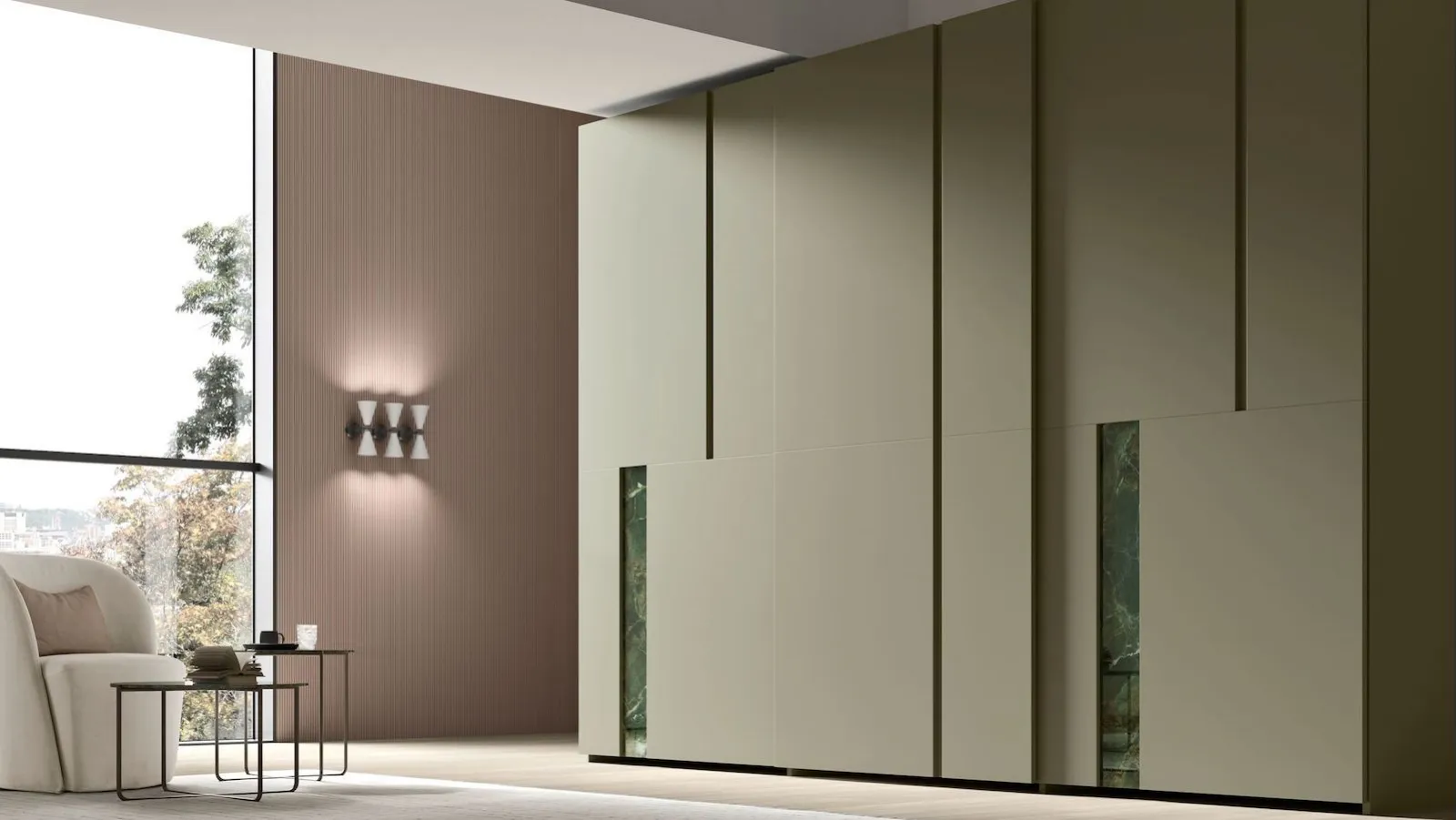 La luce è un elemento fondamentale nella progettazione di una camera da letto di 12 mq, perché contribuisce a renderla visivamente più ampia e ariosa. MARONESE consiglia di puntare su tonalità neutre e luminose, come il Cashmere o l’Ecrù, abbinate a essenze legno chiare per creare un’atmosfera equilibrata. L’inserimento di ante a specchio o di vetri fumé negli armadi aiuta a dilatare la percezione dello spazio, alleggerendo l’impatto dei volumi e riflettendo la luce naturale.