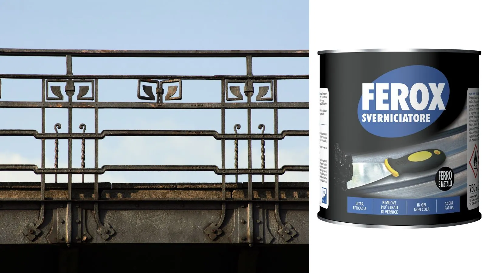 È possibile eliminare ogni traccia della vecchia vernice che si stacca al tatto con uno sverniciatore specifico per il ferro.