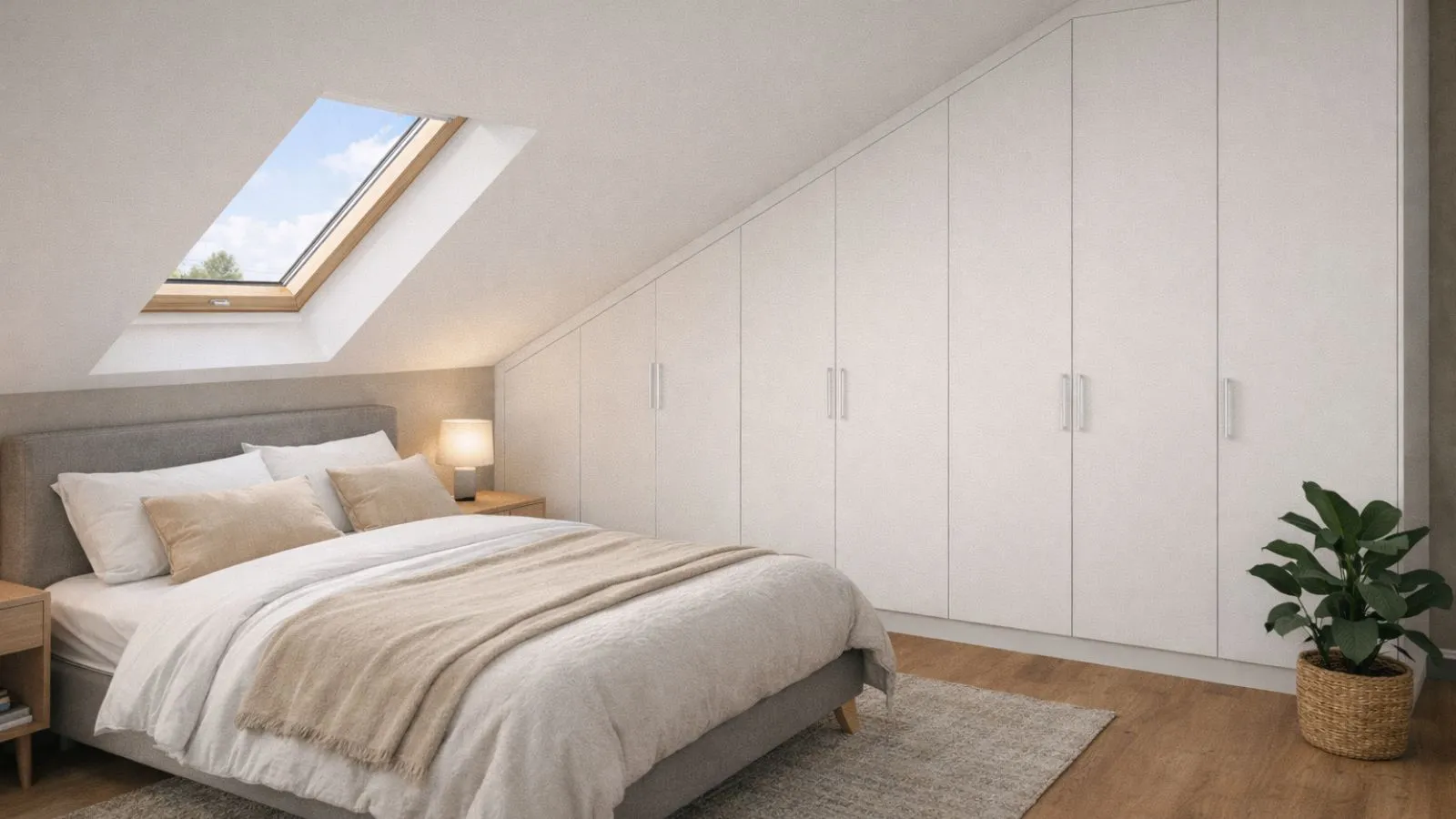 - In camera da letto, l’armadio per mansarda è progettato per seguire le quote di inclinazione di una o più falde del tetto.