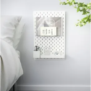 Originalità prima di tutto ma senza rinunciare alla praticità: ecco le caratteristiche del comodino appeso targato Ikea, SKÅDIS, un pannello bianco 36x56 cm da fissare alla parete vicino al letto all’altezza migliore che più aggrada. Ottenuto in fibra di legno bucherellata e lacca acrilica, con parti in acciaio e rivestimento epossidico/poliestere a polvere, grazie agli accessori giusti, in qualsiasi punto del pannello si possono predisporre mensole e recipienti per conservarci il bicchiere d’acqua, gli occhiali, la posta, il quotidiano, le chiavi. Insomma, davvero di tutto. Ecco perché SKÅDIS non è semplicemente un “comodino appeso” ma un mobiletto da 110 e lode che si può collocare in qualsiasi ambiente, senza occupare spazio a terra. SKÅDIS è infatti tutto aereo e questa è proprio la sua forza. Da sapere anche che, a seconda del materiale della parete, ha bisogno di accessori di fissaggio diversi: Ikea ne ha per tutti gli usi, da acquistare a parte.
