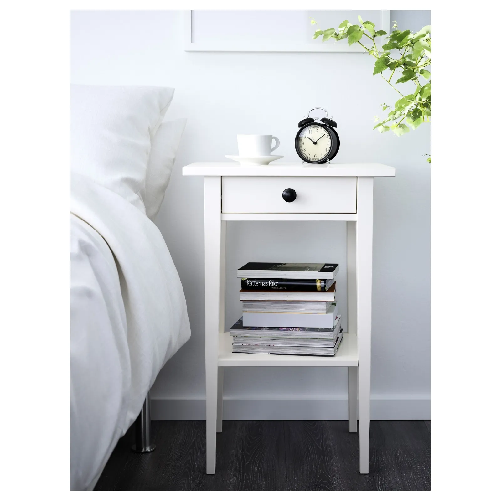 Semplice e decisamente chic: ecco HEMNES di Ikea, comodino alto ben 70 cm e profondo 35. È equipaggiato con un cassettino profondo 23 cm, facile da aprire e chiudere (dotato di ferma-cassetto e di un tondo pomello scuro a contrasto), l’ideale per metterci dentro tutto quello che può servire vicino al letto o, perché no, presso il divano o una poltroncina. Già, perché il comodino alto HEMNES si trasforma facilmente in un indispensabile tavolinetto. Anche perché la sua linea prevede la presenza di un ripiano a vista in cui collocare le riviste preferite o quei libri che dobbiamo leggere (prima o poi!): un ulteriore elemento che lo rende ancora più comodo e insostituibile, appunto. Realizzato in pino massiccio, materiale naturale dalla texture sempre diversa (non ci sono due HEMNES perfettamente uguali), resistente e duraturo, si può scegliere in differenti nuance, bianco, giallo, nero-marrone, mordente bianco. Pulibile con un panno umido e detersivo neutro, permette accostamenti di grande charme. Pensatelo ad esempio in un total look tutto bianco, spezzato magari da accessori neri, come una lampada o una sveglia vintage. Oppure giallo, in grado di richiamare la naturalità di certe atmosfere nordiche, o magari nella versione nero-marrone con elementi d’arredo etnici o a contrasto con altri mobili colorati. In qualsiasi modo, la sua sottile presenza sarà un successo.
