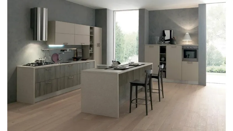Semplicità, modernità e naturalezza sono gli elementi che connotano cucina Febal Sky. Un modello contemporaneo, realizzato con materiali di pregio, scelti e curati nei minimi dettagli. Piacevole al tatto, la nuova finitura Tranché crea una nuova sensazione estetica. In Sky, le possibilità di organizzare lo spazio sono davvero tante: il nuovo pensile a soffietto, pratico ed esteticamente accattivante, propone attrezzature molto funzionali. Accessori come l’illuminazione sottopensile Manila Touch contribuiscono a creare un ambiente funzionale e d’atmosfera.