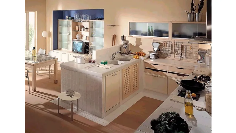 La cucina in finta muratura conserva tutto il fascino di una cucina realizzata in cemento. I vantaggi di una cucina in finta muratura sono: costi contenuti, flessibilità di utilizzo e cambio dell'arredo cucina senza demolizioni. Una soluzione così, nulla ha da invidiare a quella fissa realizzata con cemento e mattoni. I pannelli sono già pronti da comporre ad incastro. Sul mercato se ne trovano di tutti i tipi e prezzi. Negozi di bricolage e fai da te hanno un vasto assortimento per chi voglia divertirsi a costruire la composizione dei sogni in finta muratura. Lineari o angolate, le cucine di questo tipo riusciranno a soddisfare le esigenze di tutti. In foto, nel modello Luisa della linea Borgo Antico dell'azienda Lube, il forno realizzato dà l'idea di quello a legna di un tempo, pur racchiudendo una tecnologia moderna. Lo spazio del piano cottura e del lavello viene migliorato, aumentando lo spessore della base. Il modello Luisa, infatti, ha corpi avanzati che ottimizzano il limitato spazio lineare a disposizione. Le ante sono in pregiato legno massello a telaio con angolazione di 45°C. Inoltre, opportune nicchie per riporre oggetti vengono ricavate dallo spazio vuoto della finta muratura.