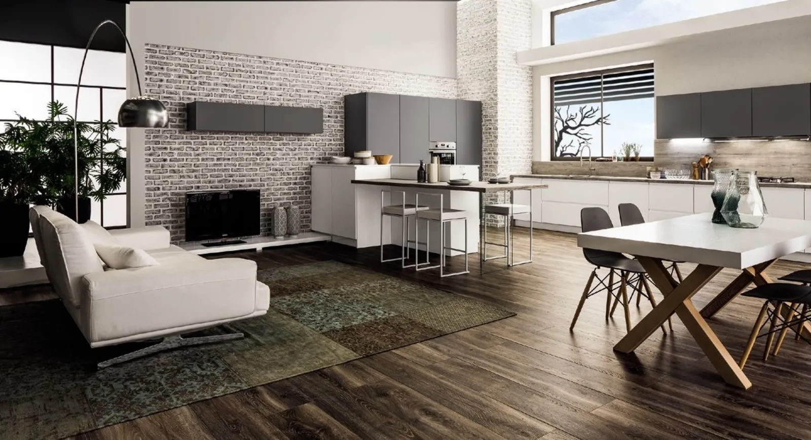 Nell’offerta di cucine Arrex non potevano mancare le collezioni ispirate allo stile moderno, adatte a chi voglia arredare una cucina che sia sempre al passo con lo spirito dei tempi. Nell’anima della cucine moderne Arrex risiedono il colore, il design, le tecnologie più avanzate e la tensione all’innovazione. La presenza di componenti modulari e la possibilità di dotarsi dei più svariati accessori permette di creare una cucina adatta a tutti i gusti, così da rappresentare la personalità dell’utente finale. Nella cucina Atlanta-Dakota di Arrex ante e frontali sono rivestiti in resina termoplastica atossica e riciclabile, in finiture effetto seta. I colori disponibili sono matt, Zucchero, Cappuccino, Grigio e Grigio Orione, tutti tenui e soft. Per Atlanta le ante sono disponibili con maniglia o sistema a gola, mentre per Dakota la maniglia è integrata.