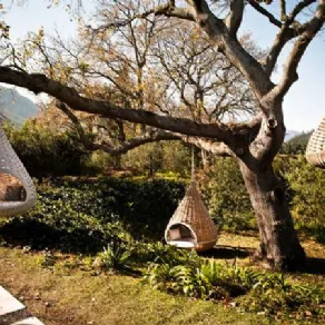 Grazie alla sua struttura armoniosa, accogliente e protettiva, Ne Strest trasforma il tipico divano da giardino in una mini-architettura, in un luogo sospeso, appartato, avvolgente, che culla e rassicura come un abbraccio, ideale per momenti di relax, meditazione e conversazione en plein air. Ne Strest prende ispirazione da forme, textures e colori della natura, dall’incredibile sofisticata concezione dei nidi d’uccello. E' stato costruito utilizzando un profilo sintetico extra-large (4 cm invece dei consueti 2), così da realizzare un intreccio robusto, portante, ma anche aperto, aerato, effetto “vedo-non-vedo”, che metta al riparo dagli sguardi e garantisca la privacy, senza però ostacolare, una volta all’interno, la percezione del mondo esterno. La struttura, prodotta in due tonalità (natural e chalk), è molto più leggera di quanto possa sembrare: appena 100 kg, grazie a un’anima di alluminio. Può essere facilmente inserita e integrata nel verde del paesaggio, appesa agli alberi o ad altri possibili sostegni, con l’ausilio di un accluso sistema di corde studiato ad hoc.