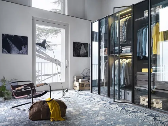 In foto: Bikomp di BIhome by Bertolotto è una cabina armadio con la struttura realizzata in un materiale leggero come alluminio. Le attrezzature interne come le mensole, le pareti e le cassettiere sono fatte in legno con speciale finitura antigraffio che ne rende semplice e rapida la manutenzione. Inoltre può essere munita di un sistema interno di led.