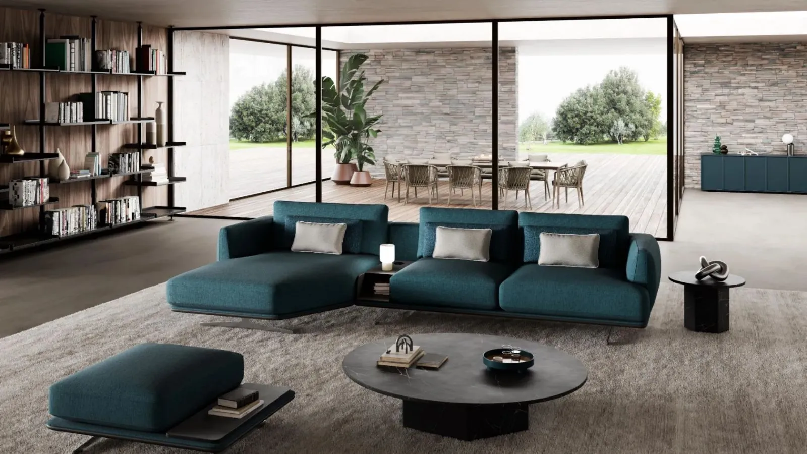 Se l’estensione del living lo consente potresti collocare il divano di design al centro della stanza per valorizzarlo al massimo. Può essere disposto in soggiorno in modo che sia il panorama a fare da sfondo.