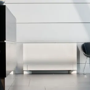 Con la definizione fan coil a pavimento ci si può riferire a due differenti tipologie di ventilconvettore, quella che si presenta con un'unità esterna poggiata a pavimento e non sospesa a parete e la versione che, invece, si installa ad incasso con una perfetta integrazione nel pavimento. Quest'ultima tipologia ben si presta a quanti desiderano avere un tipo di riscaldamento, per così dire, nascosto, privo di elementi che possano produrre ingombro sulle pareti e risultare invasivi nella percezione generale dell'ambiente; ovviamente, l'installazione di questo tipo di fan coil ha bisogno di particolari lavori che preparino l'impianto nel pavimento, cosa che può risultare piuttosto complicata all'interno di abitazioni che non richiedano particolari interventi di ristrutturazione. Può essere un'idea interessante nel caso di uffici, luoghi pubblici in cui è anche possibile installare dei pavimenti sopraelevati sotto i quali far passare l'impiantistica. Nelle abitazioni già arredate, la soluzione più conveniente e veloce è rappresentata dall'installazione di unità fan coil a pavimento, che sono facilmente sistemate, senza la necessità di interventi invasivi e costosi. Un modello interessante di questo tipo è il ventilconvettore Daikin Fwv02dtn, visibile in fotografia, realizzato con linee morbide e spigoli smussati, perfetto sia in ambienti moderni che in stanza dal carattere più classico.
