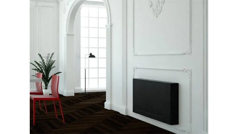 Con i fan coil non si producono stratificazioni poiché si sviluppa un continuo ricircolo d'aria nell’intero ambiente. Neppure si possono produrre correnti fredde perchè il ventilconvettore esercita un'azione che le può neutralizzare. Il riscaldamento è più efficiente dato che non vi sono perdite di calore per radiazione verso la parete posteriore all'apparecchio. Questo produce un minor consumo di combustibile e minori spese di gestione. Tutto il calore viene perciò ceduto all'ambiente e alle persone in esso presenti. Flat di Galletti (in foto) rappresenta la nuova generazione dei fan coil progettata con l'obiettivo di offrire prestazioni e design ai vertici della sua categoria. Flat significa innovazione anche in termini progettuali, per garantire prestazioni sonore di assoluta eccellenza con il vantaggio di un design esclusivo che ben si abbina sia all'utilizzo residenziale sia a quello commerciale.Il mobile di copertura di design ha un colore RAL9010, con pannello frontale in lamiera di acciaio, fiancate, griglia superiore e portelle laterali realizzate in ABS stabilizzato agli UV. La griglia superiore è costituita da un flap ed alette orientabili. Il motore elettrico a commutazione elettronica BLDC (brushless) è montato su supporti antivibranti. In foto: fan coil Flat di Galletti montato in soggiorno
