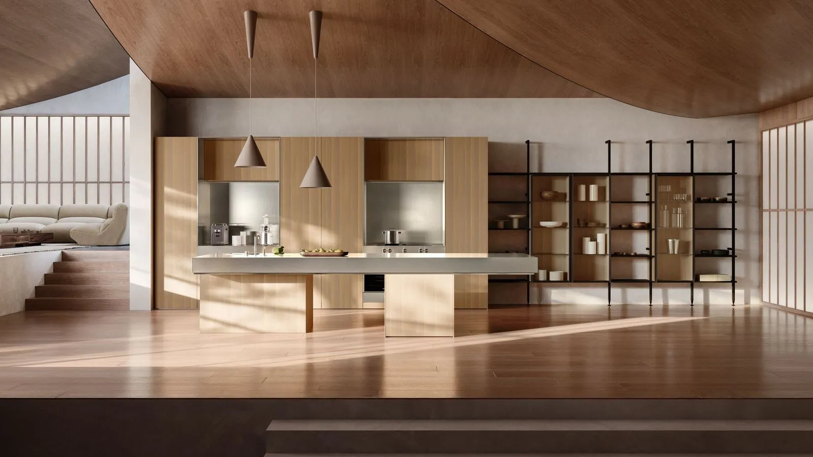 Come cambiano le forme dei mobili cucina?Si assiste a una decisa rottura delle geometrie rigide in favore di linee curve e volumi ibridi. Le isole diventano blocchi scultorei con geometrie organiche che richiamano il design degli anni '70, trasformando la cucina in un elemento d'arredo fluido capace di dialogare apertamente con l'area living.