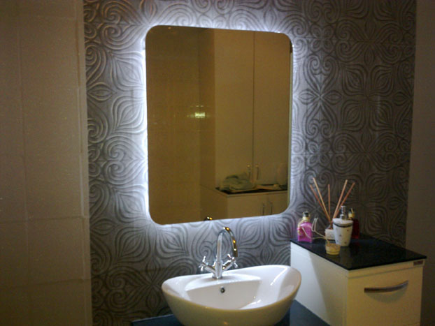Ho uno specchio in bagno che è circa 1.4mt x 0,72. Ha sui bordi una bisellatura di circa 2cm con vetro satinato. Vorrei realizzare una illuminazione a "quadro" tipo questa: