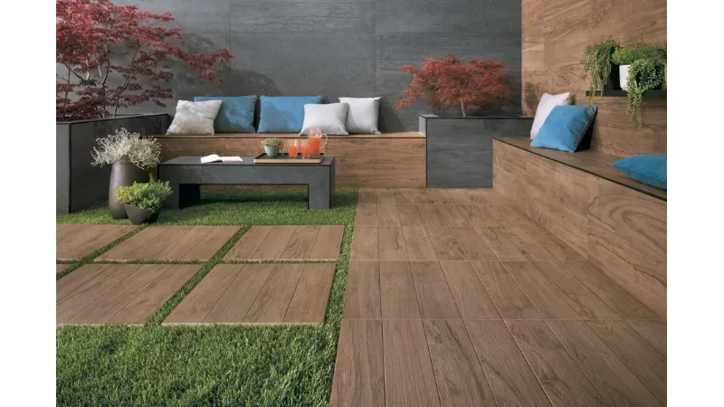 Le piastrelle in gres porcellanato sono un’opzione vincente anche per quanto concerne la pavimentazione di spazi outdoor (giardini, camminamenti, terrazzi, bordi piscina, gradini): non solo non assorbono acqua, per quanto resistono al gelo, non vengono danneggiate dagli sbalzi termici e sono antiscivolo.