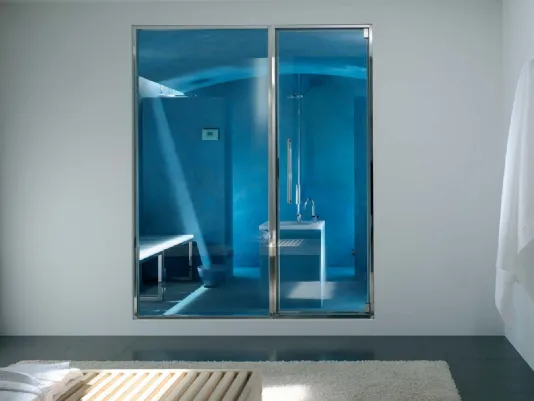 L’hammam o bagno turco, è caratterizzato da elevate temperature (fra i 40 °C e 60 °C) e un’alta percentuale di umidità (fino al 95%). Tale trattamento ha sulla nostra persona diversi effetti benefici. Il calore dilata i pori della pelle e il vapore favorisce l’eliminazione delle tossine e dei liquidi in eccesso. L’hammam è ideale anche contro lo stress e la tensione, per alleviare dolori ai muscoli e per liberare le vie aeree. Hafro Geromin, con Olimpo, ci offre l’opportunità di trasformare la stanza da bagno o un locale appositamente dedicato in una piccola spa domestica, che non avrà nulla da invidiare a quelle professionali. Un ambiente hammam unico nel suo genere: nella vasca interna al bagno turco, l’azione purificatrice dell’acqua trova la sua massima espressione nel rivoluzionario sistema MicroSilk®. La nuova frontiera dell’idroterapia infonde autentiche sensazioni di benessere, mentre grazie ad un comodo cuscino pieghevole possiamo a seconda del momento e dell’esigenza trasformare la vasca in un lettino o in una confortevole seduta. Grazie a MicroSilk® l’idromassaggio avvolge il corpo di ioni negativi, che regalano benessere e giovinezza. Intanto un getto particolare idrata la pelle producendo microbolle che hanno effetti benefici anche sulla respirazione. L’ossigeno presente nell’acqua supera del 70 per cento quello di una normale SPA e sa agire in profondità per assicurare benessere al corpo e alla mente.