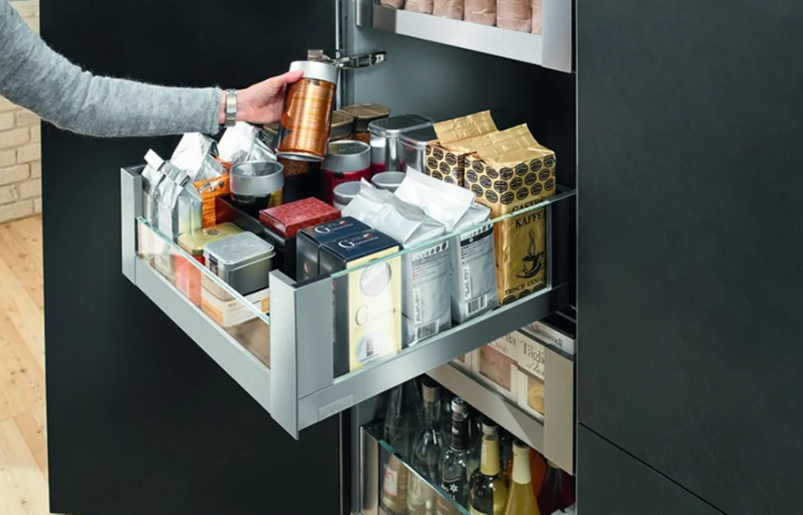 Mensola, armadietto, ripostiglio, carrello. Sono tanti gli spazi che è possibile adibire a mobile dispensa, seppure con potenzialità e usi diversi: la dispensa perfetta è quella che contiene una buona quantità di prodotti alimentari – per esempio quelli che non vogliono la luce diretta ma non hanno neppure l'esigenza del frigorifero – e oggetti per cucinare. Esistono diversi tipi di mobile adatti a questo uso, l'importante è fare una buona analisi per capire quali sono le esigenze di chi la utilizza e quanto spazio deve essere dedicato a questo scopo: una famiglia numerosa sicuramente richiederà più organizzazione nel pensare ai vari ripiani o mensole. Il mobile dispensa deve contenere dunque le scorte di cibo e tutti gli utensili utili in cucina, ciascuno con una sua corretta collocazione per non perdere tempo prezioso a cercare; per questo è meglio pensare prima alle abitudini culinarie quotidiane e poi fare una prova di sistemazione. Nella foto vediamo la dispensa Space Tower di Blum.