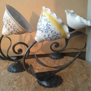 I lampadari in ferro battuto e ceramica uniscono alla grande praticità e versatilità del ferro battuto, il forte potere decorativo della ceramica, che riesce ad arredare con semplicità e varietà. Per gli ambienti di passaggio soprattutto, come corridoi e disimpegni è possibile giocare con l'elemento in ceramica che "veste" il lampadario della forma e del colore desiderato, soprattutto lo coordina con l'arredo presente nella stanza e conferisce alla stanza calore e allegria. Bisogna tenere condo comunque che i lampadari in ferro battuto e ceramica tendono a veicolare la luce in una direzione sola, al contrario di quanto si verifica ad esempio con il vetro o anche con gli specchi che diffondono maggiormente il riflesso della luce in più punti. Proprio per tale ragione, è bene optare per questo tipo di lampadari solo nei punti in cui non si ha necessità di illuminazione intensa, come ad esempio in cucina o in un ambiente di lavoro, dove è necessario disporre di luce diretta per non affaticare gli occhi mentre si lavora e si ha bisogno di vedere bene quello che si sta facendo.