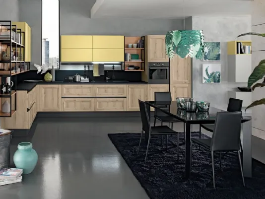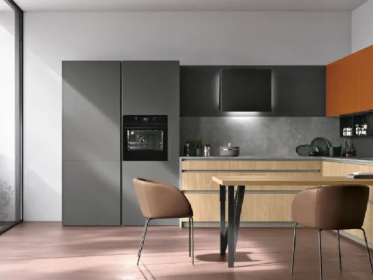 Cucina angolare Memory di Febal Casa: la sua anta a telaio può essere combinata con ante lisce, esprimendo il massimo della versatilità.