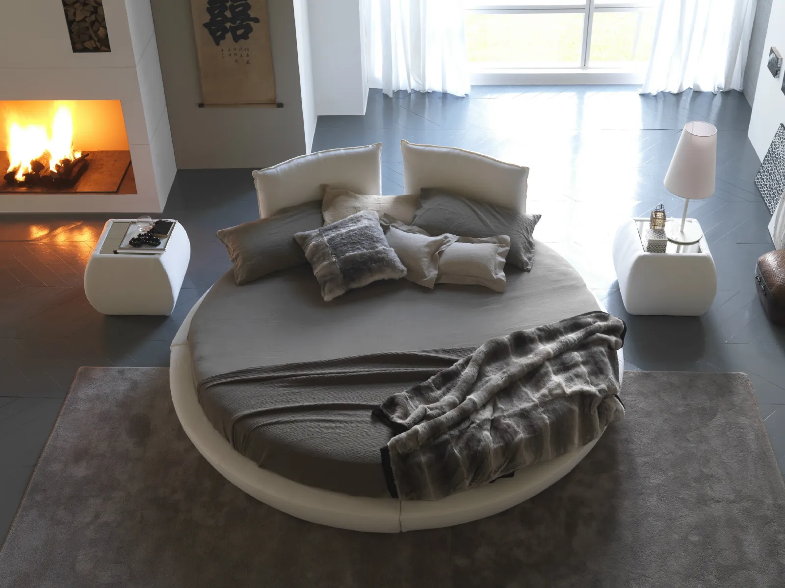 I letti rotondi sono ormai un prodotto di arredamento abbastanza diffuso in quanto le aziende specializzate nella produzione di letti hanno da tempo capito che quello rotondo esercita un forte fascino sulla mente del consumatore. Per questo motivo, in commercio se ne trovano di ogni stile e modello: esistono i letti rotondi in pelle, in stoffa o in legno; con o senza testiera; con il vano contenitore sottostante oppure con comode librerie sotto la pedana, etc. Questa varietà di soluzioni permette una più ampia libertà di scelta da parte del cliente che può decidere, così, di arredare la propria camera da letto in modo molto originale. Il modello Zero Side Presotto (in foto) è in eco-pelle bianca (ma si può acquistare anche in altre tonalità), presenta forma circolare ma materasso tradizionale ed un vanno sottostante la rete per conservare lenzuola e coperte.