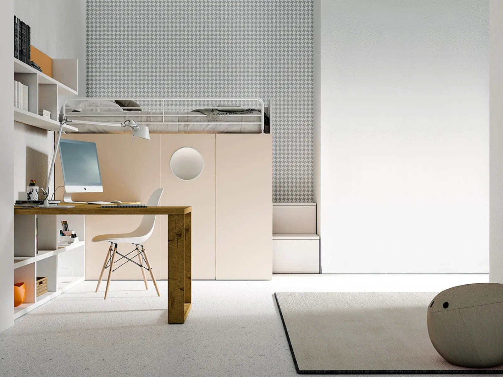 - scegliere mobili che si sviluppino in altezza per sfruttare al meglio tutte le pareti e minimizzare l’impatto a terra. Perfetti i letti a castello, le camerette a ponte o a soppalco. Queste ultime assicurano la massima organizzazione grazie a cabine armadio che “sostengono” il letto posto in quota, capaci di tenere tutto in ordine con la loro grande capienza contenitiva. Un ottimo esempio è Container di Dielle, il guardaroba alto ben 168 cm e con un volume di 3,5 metri cubi da sfruttare per la perfetta sistemazione del guardaroba;