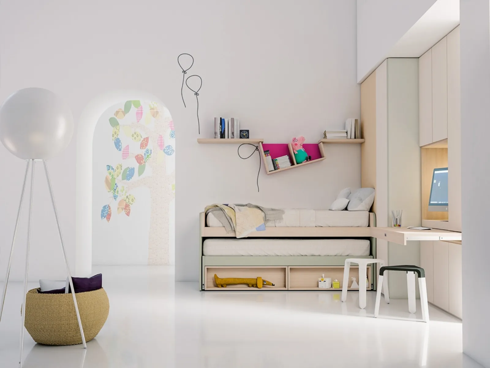Approfondiamo meglio questa cameretta salvaspazio, scoprendone nel dettaglio plus e caratteristiche: