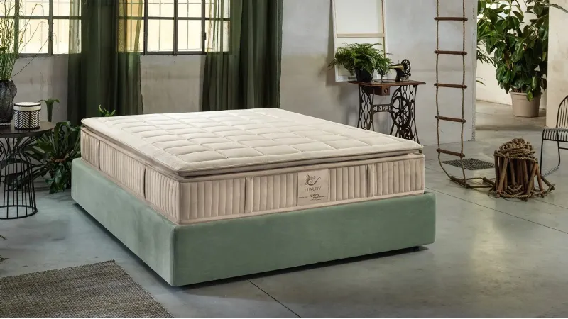 Luxury di Dem Armonie del Sonno integra nella struttura 3000 micromolle e memory, il tutto inserito in un prezioso rivestimento. Questo materasso offre un sostegno medio-rigido.