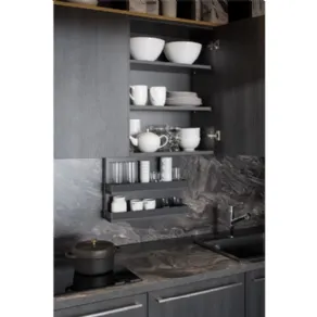 Perché Sesam è un pensile superiore con la doppia profondità. Con 13 cm in più rispetto agli standard 35 cm, si riesce a creare uno spazio "nascosto" nel mobile che appare e scompare con un semplice clic. In questo modo, si dispone di più spazio non rinunciando però ad estetica e praticità. Infatti con un semplice tocco è possibile avere a portata di mano tutto il necessario per condire una gustosa Ceaser Salad o poter prendere, dopo un pranzo conviviale, le tazzine e godersi un fumante caffè italiano. Il tutto senza rinunciare a una cucina pulita e lineare, senza troppi accessori in vista.