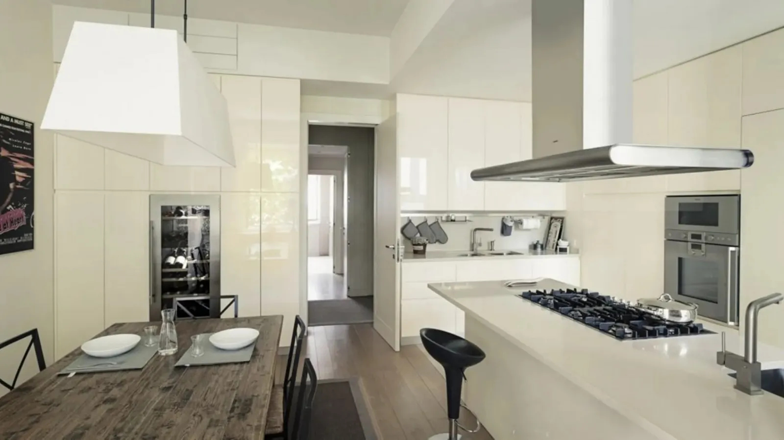 Camagni Cucine ed Interni (Showroom Cucine Via G. Da Cermenate, 22c, 22063 - Cantù, Como) confeziona cucine come un vero e proprio abito sartoriale. Tra le realizzazioni su misura, una cucina moderna di lusso con arredamento a tutt'altezza alleggerito dalla scelta cromatica del bianco che esalta il contrasto con il pavimento in legno chiaro e il tavolo in stile.