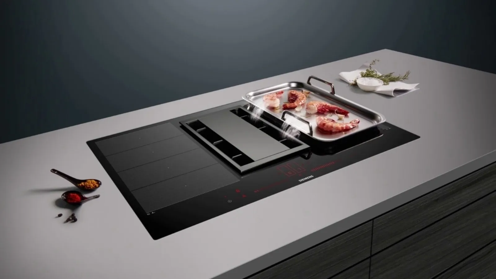 Con un piano a induzione si riducono notevolmente i tempi di cottura delle pietanze, rispetto ai classici fornelli a gas, grazie all’erogazione di calore diretta solo sul fondo della pentola, evitando dispersioni. Infatti, per portare all’ebollizione un litro di acqua su un fornello a gas occorrono dai 5 ai 7/ 8minuti, mentre ne bastano soltanto 3 su un piano cottura ad induzione. In foto: inductionAir System, nuovo modello piano cottura di Siemens che presenta un sistema di ventilazione integrata e un design elegante e, al contempo, essenziale, in linea con le ultime tendenze. Inoltre, occupa poco spazio sotto il piano di lavoro e permette l’inserimento di cassetti sottostanti, per avere a portata di mano tutto ciò che serve in cucina, come utensili e stoviglie. Un’altra caratteristica di inductionAir System è quella di rilevare la forma esatta delle pentole, in modo che il calore sia indotto solo su quest’ultime. Un’altra funzione particolare è powerMove Plus, che divide tre zone di cottura, ognuna delle quali ha un diverso livello di potenza, a seconda di ciò che si vuole cucinare. La funzione flexMotion, invece, serve a rilevare e memorizzare la temperatura di ogni pentola.