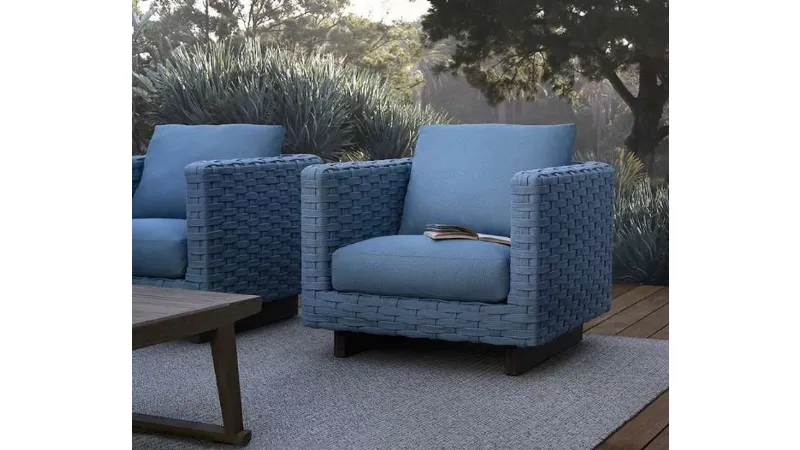 L’arredamento outdoor diventa sempre più simile a quello indoor. Ciò accade perché gli spazi esterni sono ormai considerati un prolungamento degli interni domestici: forte è il desiderio di viverli il più e il meglio possibile. Le aziende del settore, all’ultima edizione del Salone del Mobile, hanno presentato prodotti curati in ogni dettaglio e inquadrabili in due tendenze diverse: da una parte il minimalismo, che non perde consensi; dall’altra un design ricercato e sempre più elaborato. Il secondo filone, definiamolo così, trova perfette espressioni in molte poltrone. Comode, raffinate, da ammirare e godere. In foto Ray Outdoor Fabric, disegnata da Antonio Citterio per B&B Italia e inserita nel catalogo 2018. La peculiarità è l’intreccio a nastro realizzato in fibra di polipropilene, resistente ai raggi UV e agli agenti atmosferici. La gamma di colori comprende il turchese, il blu, il verde acido, il tortora, il bordeaux. Ray Fabric Outdoor è disponibile sia con piedini in estruso d’alluminio che con basamento in teak.