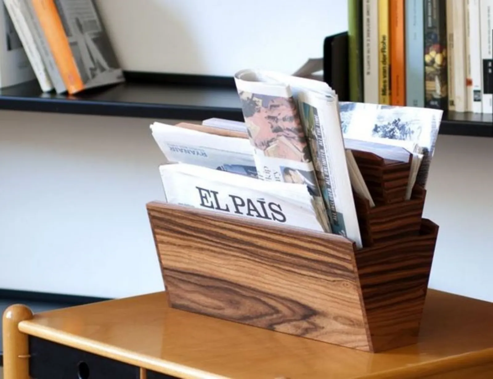 Il portariviste in legno è il più classico, ma non per questo bisogna sottovalutarlo. Anzi. Grazie alla sua versatilità, infatti, il legno si adatta a qualsiasi stile e assume qualsiasi forma: il risultato coincide con un design sempre di gran classe e con forme spesso inedite. Chi desidera un portariviste in legno dalle tonalità scure si orienti verso il teak e il wengè; chi predilige le tonalità chiare può anche scegliere un modello laccato. Interessante la proposta di Vitruvio Design: si chiama Uno due sei ed è un portariviste in legno (di acero o in palissandro, si puo' scegliere) con due lati simmetrici e sei tasche per riporre i giornali, la corrispondenza, fogli di ogni dimensione. Il disegno ricorda un fiore stilizzato e le chiodature in legno massello impreziosiscono il risultato finale. Non solo: in alto ci sono due scomparti chiusi che possono ospitare oggetti più piccoli e magari dotati di una certa importanza.