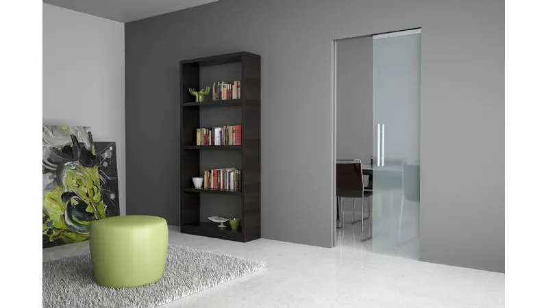 Le porte a scrigno in vetro sono soluzioni alternative alle tradizionali porte a battente, in particolare per tutti quei casi in cui gli ambienti non dispongono di spazi abbastanza ampi come ad esempio i monolocali e i bilocali, oppure le mansarde. Questa tipologia di arredo è pensata in modo che possa scomparire all'interno della parete in un alloggio realizzato appositamente. Tale dettaglio permette di creare una zona open space che può essere chiusa in qualsiasi momento facendo scorrere la porta nascosta. Recentemente le porte a scrigno sono state largamente impiegate nell'arredamento moderno per il fatto che coniugano la comodità alla funzionalità di un infisso dall'aspetto gradevole senza rinunciare all'utilità che se ne può trarre. Inoltre la presenza del vetro come componente principale è un sinonimo di freschezza e di modernità particolarmente apprezzate nelle abitazioni e negli edifici di nuova costruzione. Peraltro garantisce il passaggio della luce naturale divenuta negli ultimi tempi una risorsa preziosa anche in tema di ecologia dato il minor sfruttamento necessario dell'elettricità per illuminare. Nella foto: porta Doal
