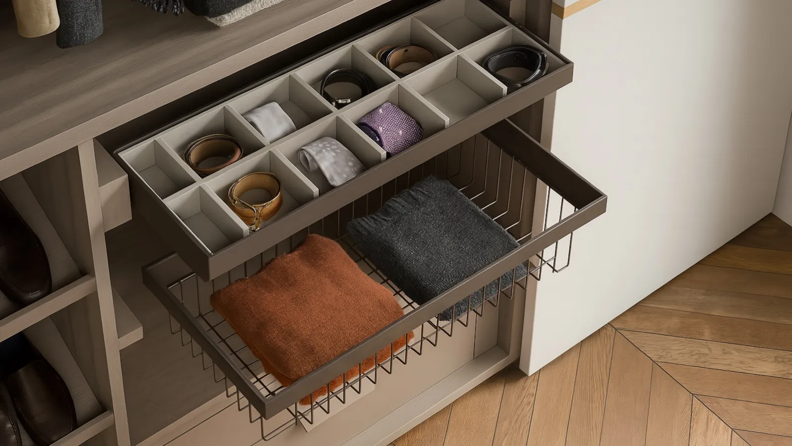 L’interno dell’armadio è il vero protagonista della quotidianità, e una corretta organizzazione può fare la differenza tra caos e ordine duraturo. Per questo oggi esistono moltissimi accessori interni studiati per ottimizzare ogni spazio: servetti abbassabili per appendere abiti anche in alto, cassetti estraibili con divisori, portapantaloni, scarpiere, vani per borse e cinture, oltre a ripiani regolabili che si adattano facilmente al variare delle esigenze. Le barre appendiabiti possono essere installate a diverse altezze per gestire capi corti e lunghi in modo ordinato. L’aggiunta di un sistema di illuminazione integrata a LED migliora sensibilmente l’esperienza d’uso, specialmente nelle ore serali: i punti luce possono essere installati all’interno dei vani o lungo i fianchi, con accensione automatica tramite apertura dell’anta o sensori di movimento. Questi dettagli funzionali, spesso trascurati nella progettazione iniziale, elevano la qualità dell’utilizzo quotidiano e aiutano a mantenere un livello di ordine costante, trasformando l’armadio in un alleato silenzioso del vivere bene.