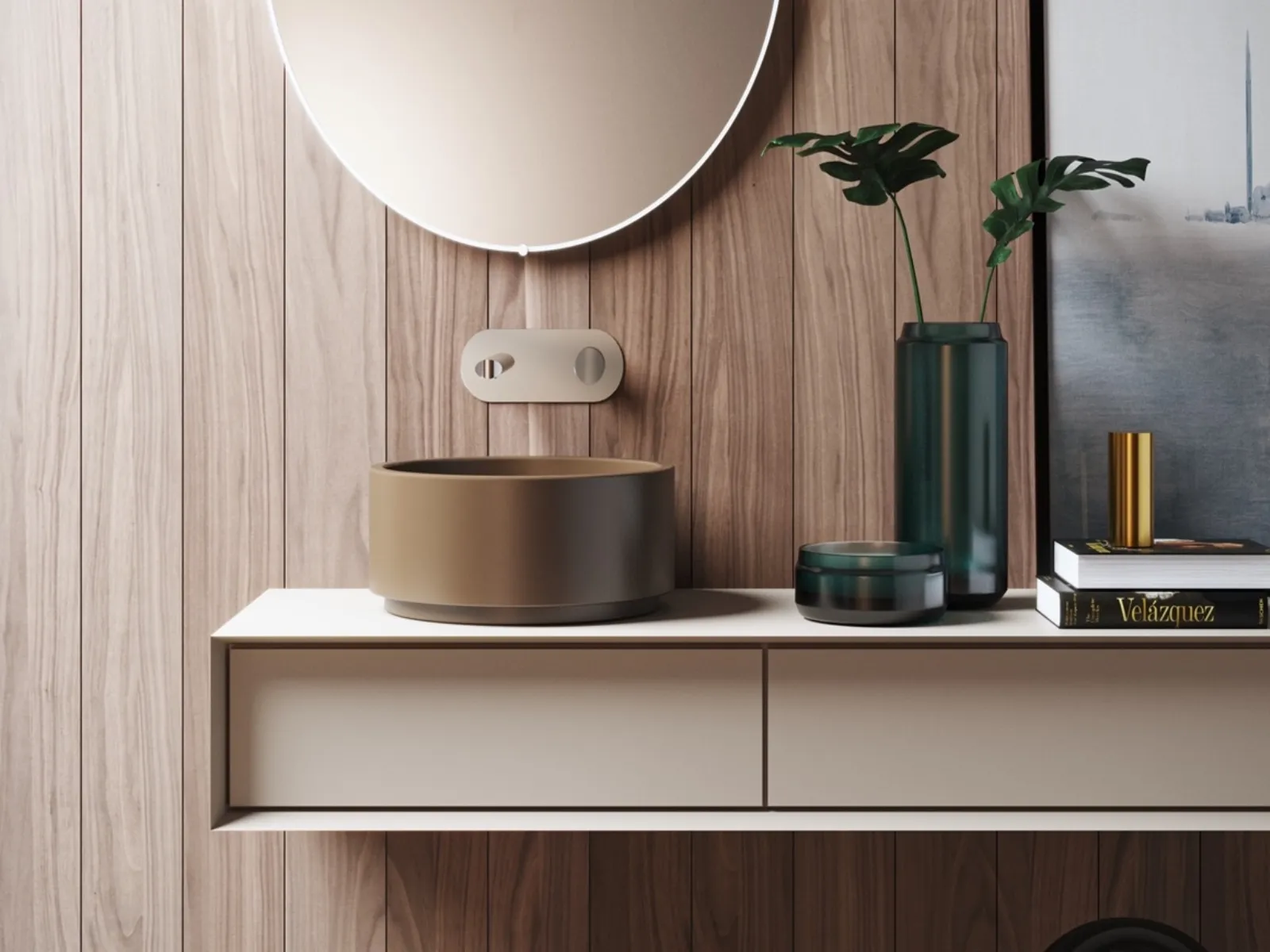 Grande eleganza per il lavabo da appoggio, modello ideale per il bagno moderno.