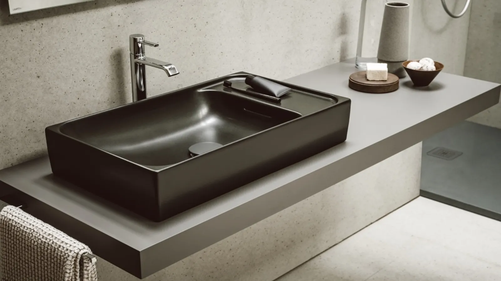 Elemento fondamentale da considerare nel lavabo da appoggio è l’abbinamento con il piano che lo sorregge, in una soluzione funzionale dagli ingombri minimali.