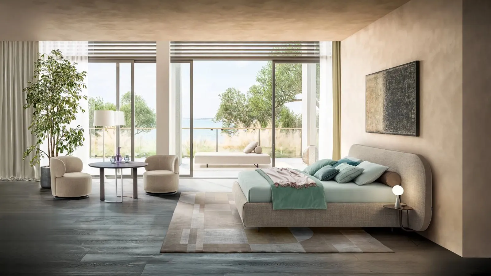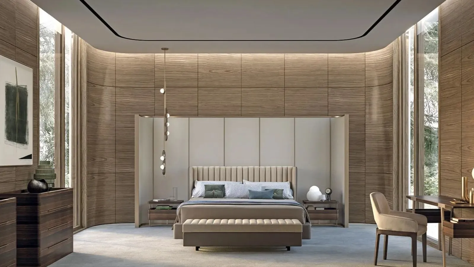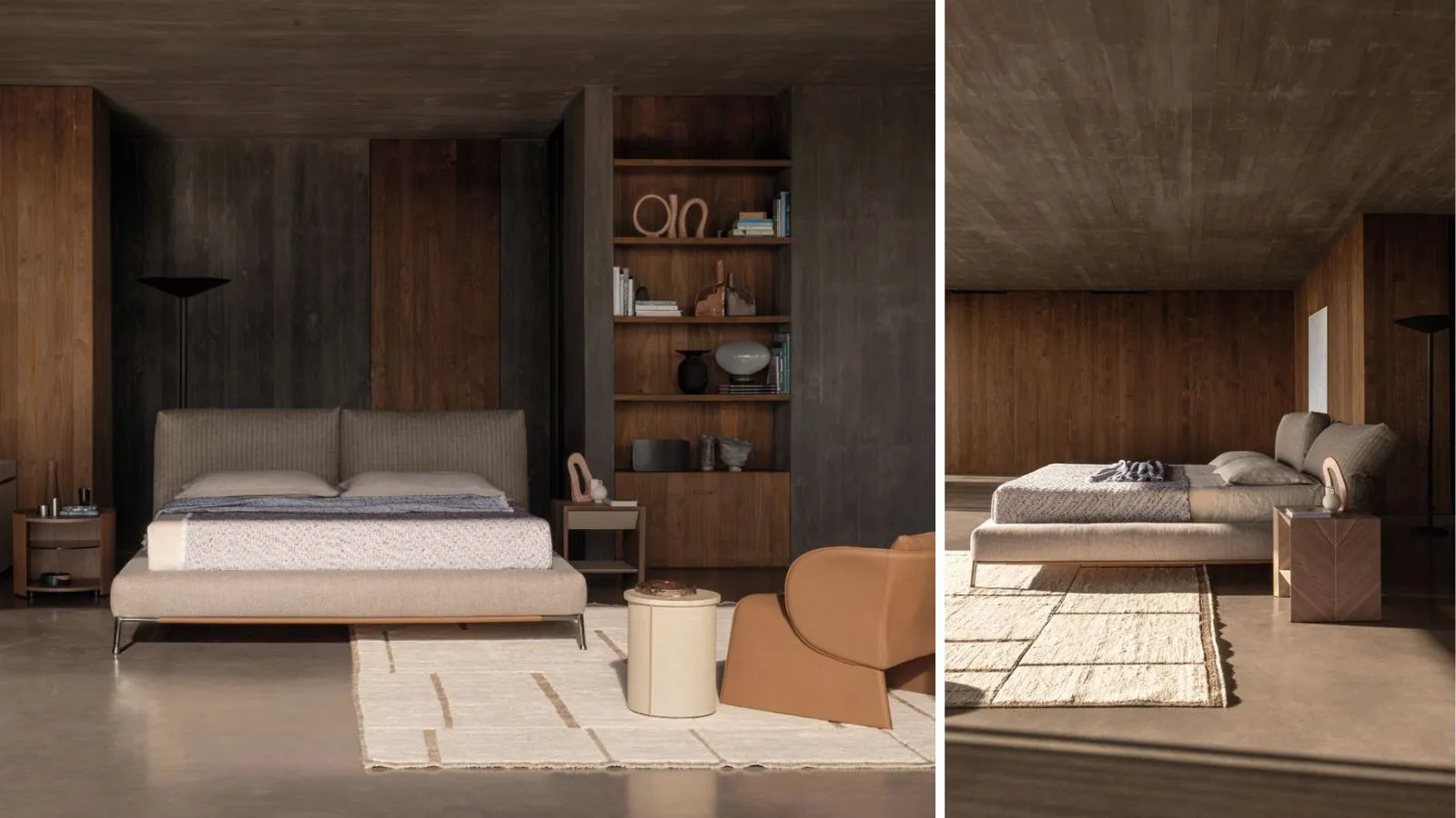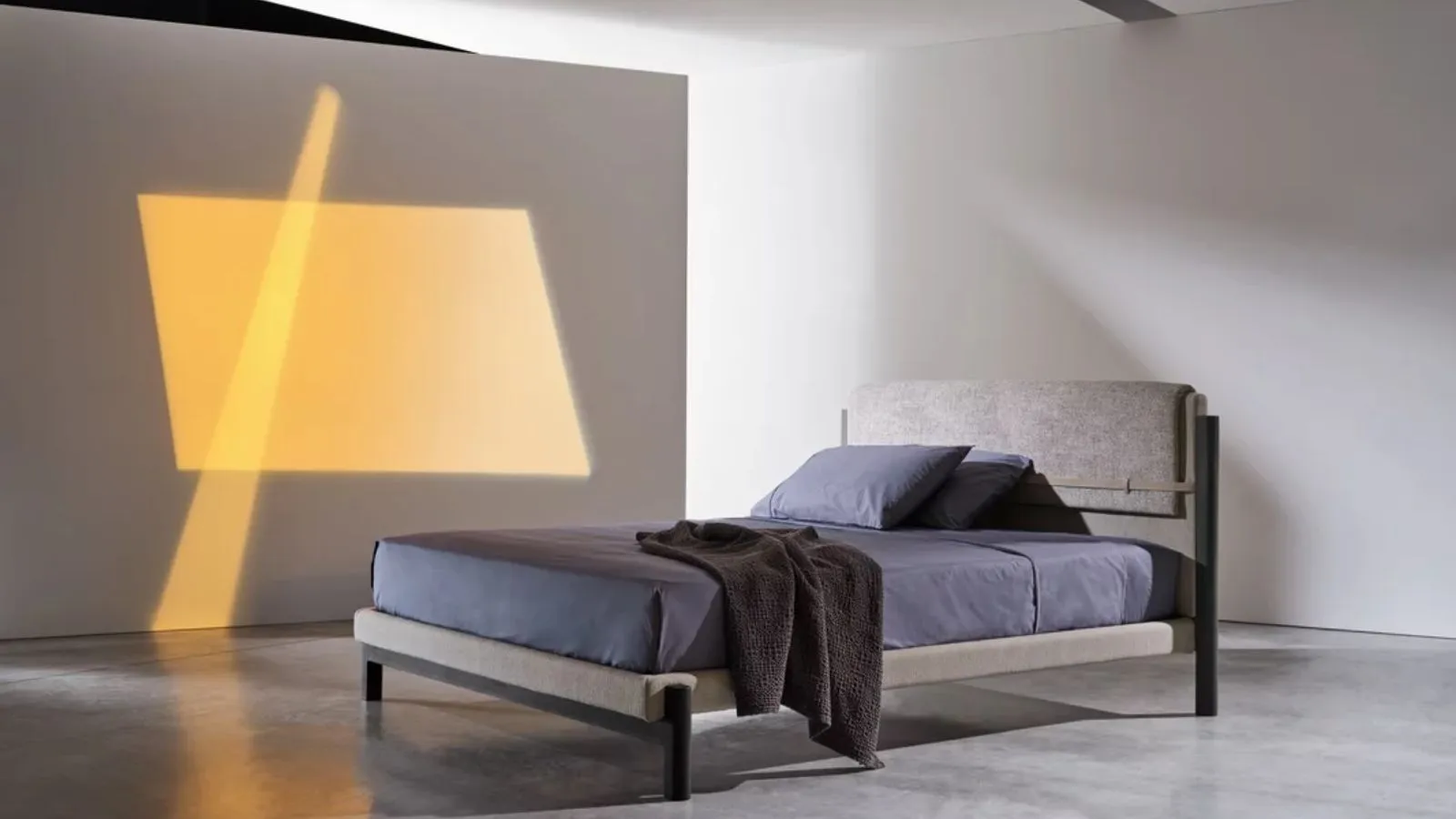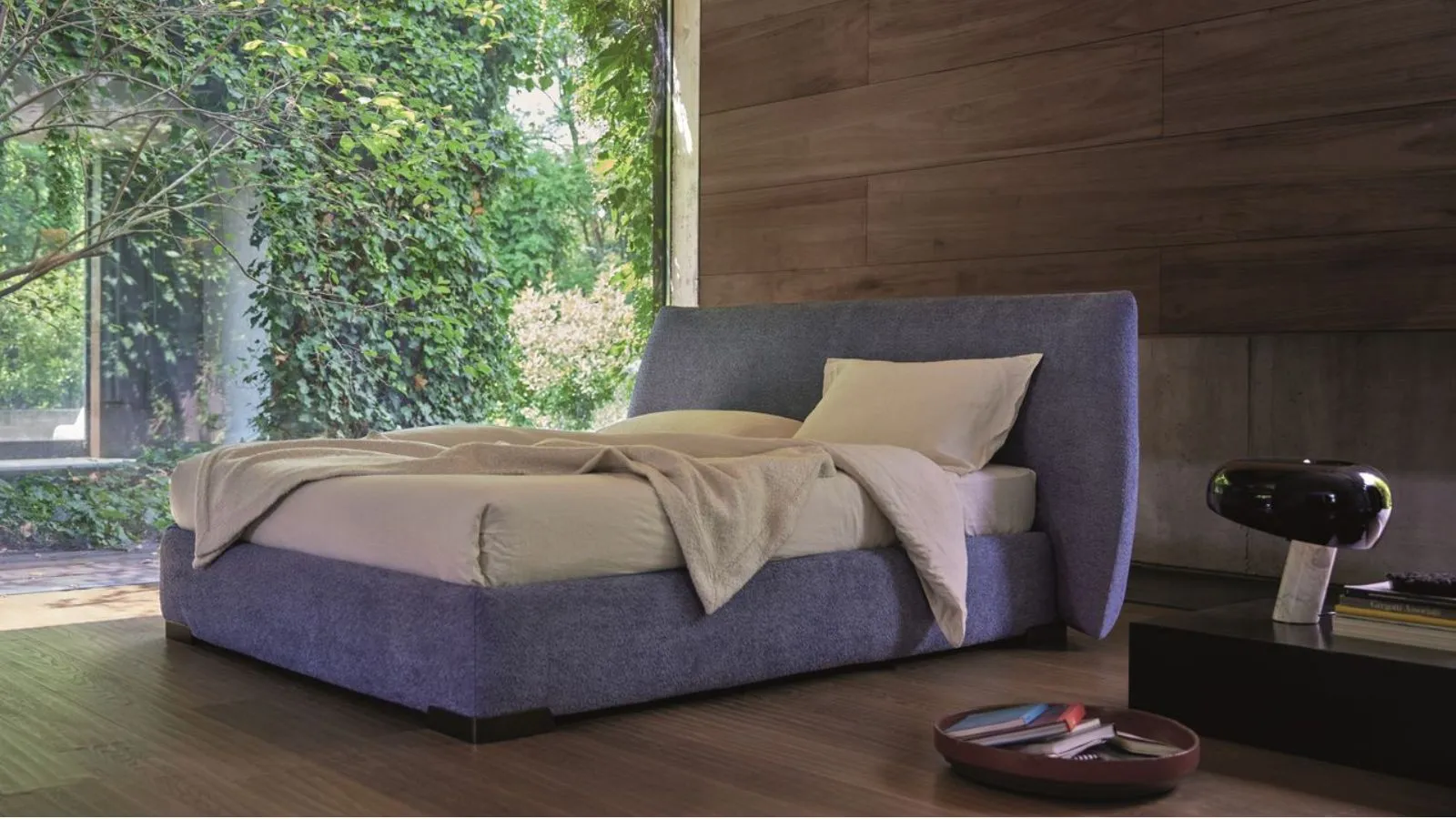 È gioco di volumi che crea un impatto estetico fuori dal comune, con il tessuto della testata che si adagia e ricade proprio come una coperta. È un letto adatto per chi desidera stupire con un'esperienza sensoriale davvero inedita.