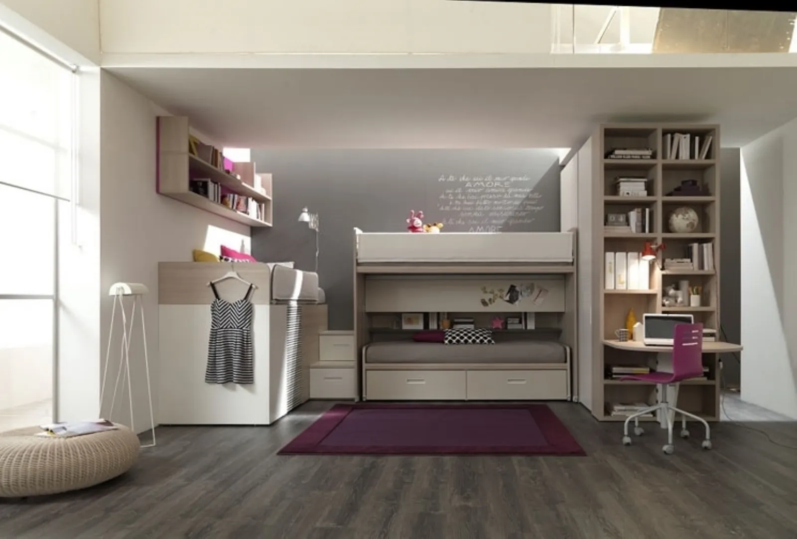 Quando la cameretta non dispone di uno spazio generoso o regolarmente distribuito ci vengono in aiuto le soluzioni salvaspazio per arredarla.