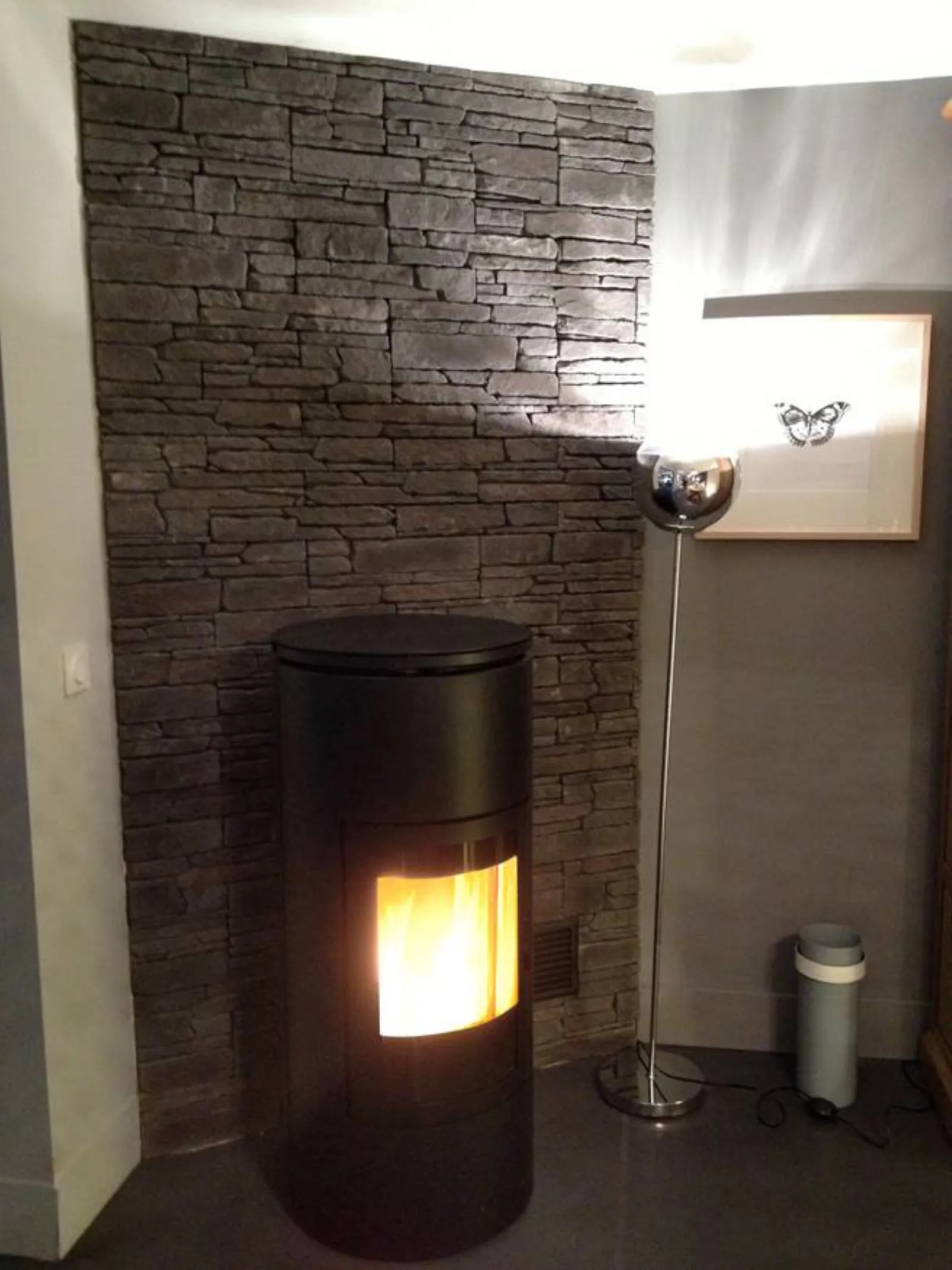 La stufa a pellet canalizzata è un prodotto davvero interessante, perché con un unico generatore di calore è possibile riscaldare più stanze nello stesso momento. Nel progetto che vi presentiamo, una stufa a pellet Tube di MCZ è diventata la protagonista di un soggiorno moderno ed elegante, realizzato nei toni del bianco, del nero e del grigio. Valorizzata da una parete in pietra a spacco, la stufa a pellet Tube è stata scelta nella versione nera. Il suo design essenziale, senza alcuna bocchetta di ventilazione a vista, si adatta perfettamente all’arredo scelto. La forma rotonda, inoltre, è perfetta per essere installata in un angolo. In foto: La stufa a pellet canalizzata Tube di MCZ installata in Francia per un progetto di Extreme Makeover Home Edition (“Une semaine pour toute changer”).