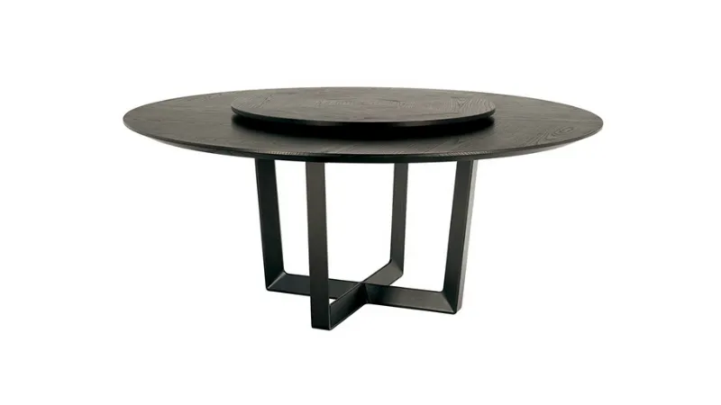 La sensazione calda e naturale del legno però non viene esaltata solo dalla forma squadrata. Non tutte le case infatti sono adatte ad ospitare tavoli in legno rettangolari. Negli ambienti dove il tavolo rotondo è la scelta più adatta per valorizzare lo spazio, il legno risulta un’ottima materia prima al servizio del design. Resistente, sensoriale, facilmente adattabile alle esigenze di forma e funzione, il legno esalta il fascino del tavolo rotondo. A seconda del tipo di base– ad elemento unico centrale o su gambe - e di lavorazione, è possibile trovare soluzioni capaci di comunicare grande leggerezza oppure solidità. Possono essere grandi, per ospitare molti commensali o invitati, oppure piccoli nella misura da bistrot, utili in piccoli ambienti o in angoli di lettura. Il tavolo rotondo in legno Bolero di Poltrona Frau (nella foto) ha linee pulite e una base dalla forma elegante realizzata in massello di frassino o noce canaletto. Il piano centrale è in impiallacciato tranciato di Frassino tinto wengè o noce canaletto. E’ disponibile anche con piano girevole centrale da appoggio, per passare agevolmente le vivande. Le venature del legno esaltano le forme perfette di questo tavolo che trova nella purezza delle forme combinate la sua cifra stilistica.